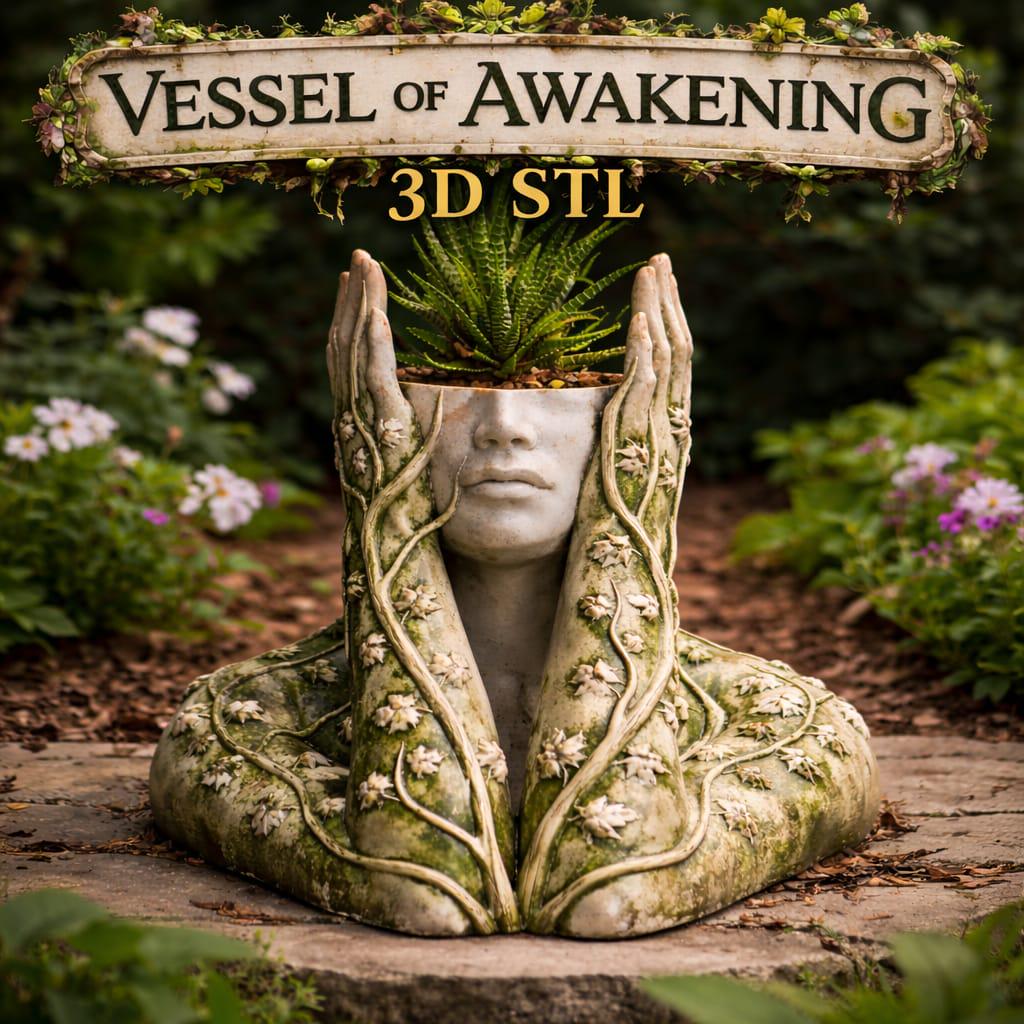 Dale un toque artístico y místico a tu espacio con el Vessel of Awakening STL, un diseño escultórico en forma de busto con manos elevadas y detalles orgánicos inspirados en la naturaleza.