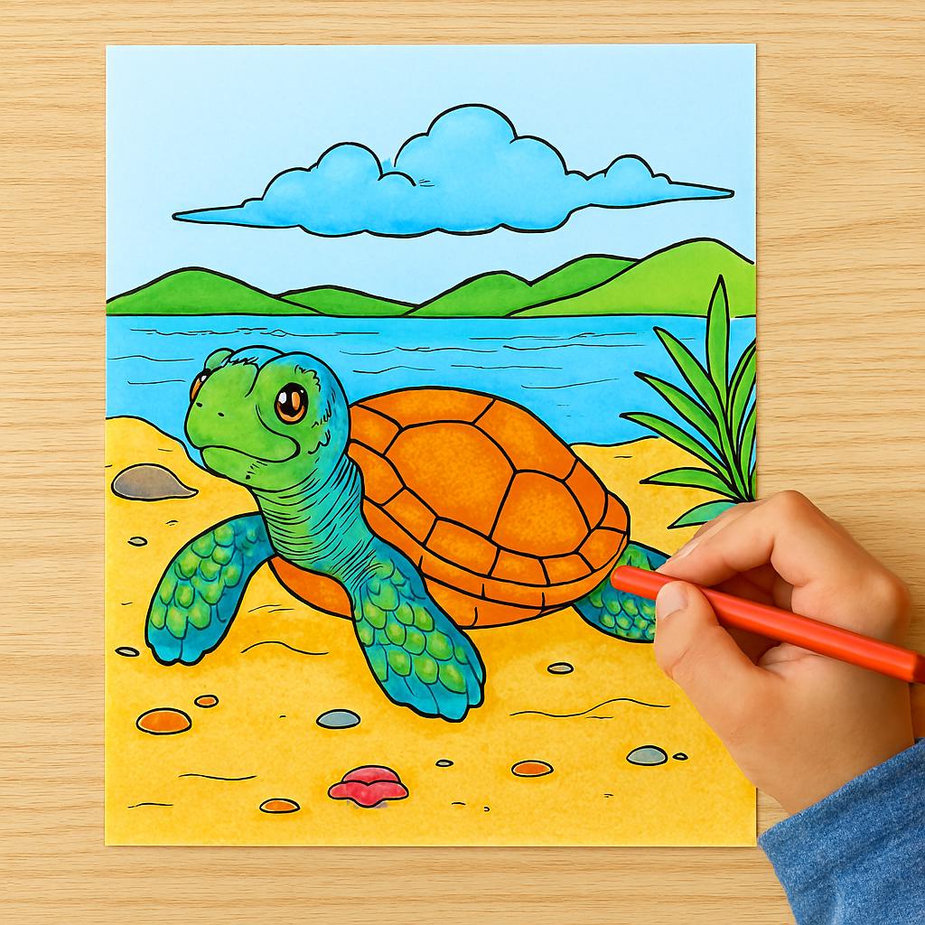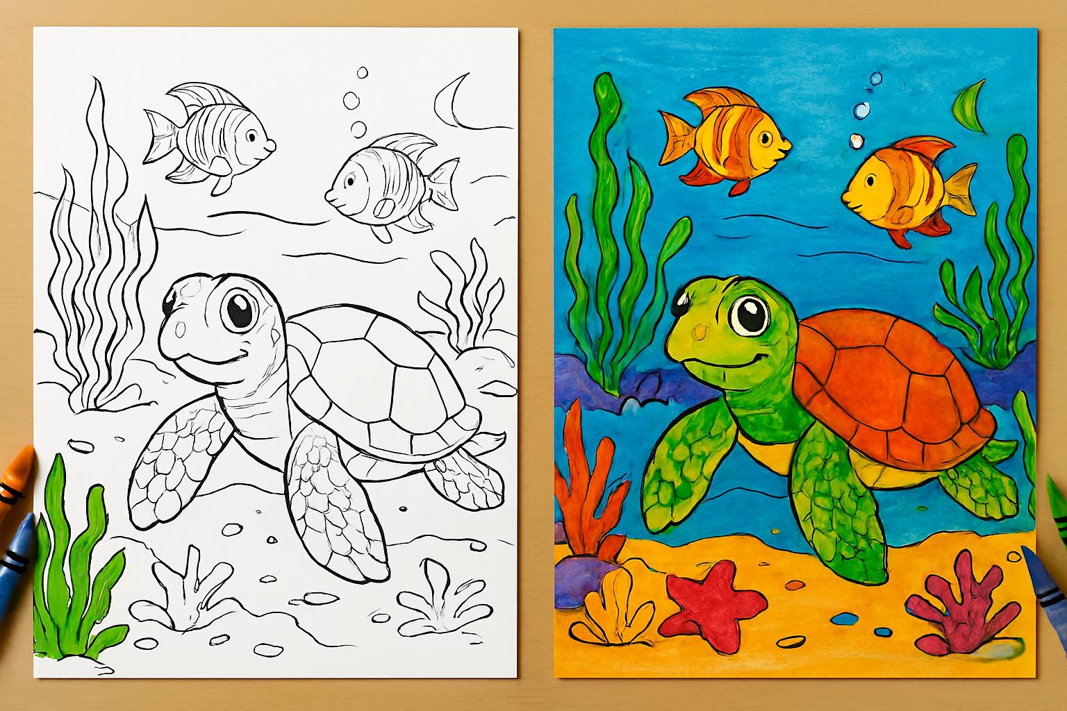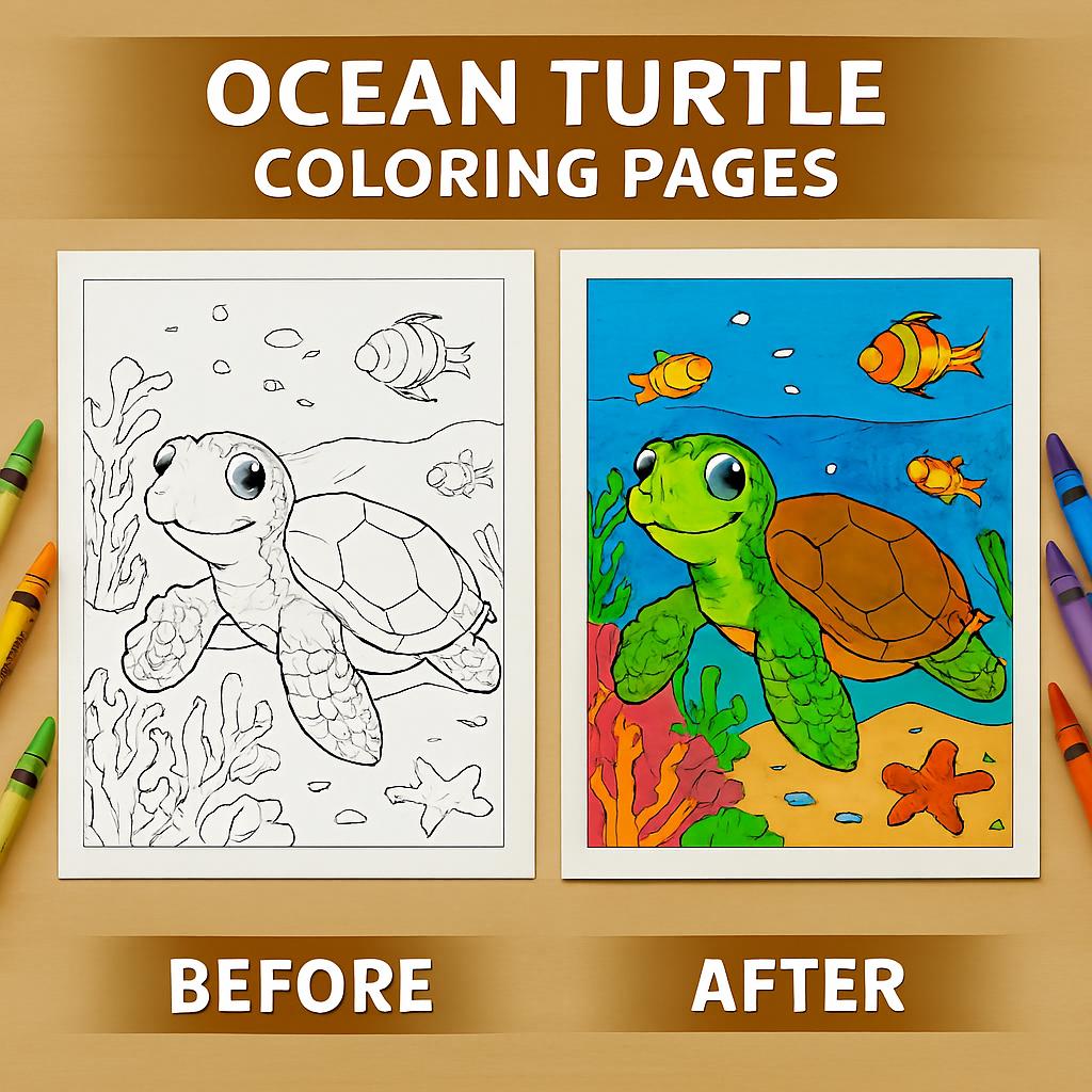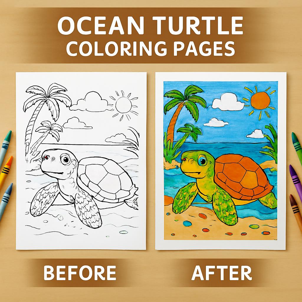 10 Sea Turtle Coloring Pages for Kids | Printable Ocean Animal PDF | Fun Beach & Reef Scenes