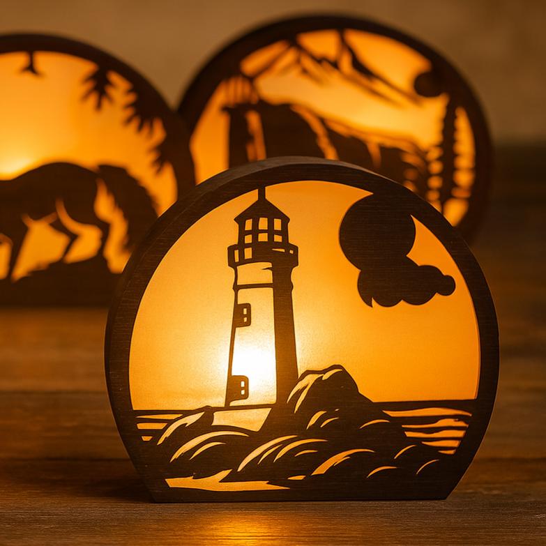 Todos los diseños están optimizados para materiales de 3 mm, garantizando cortes limpios y un ensamblaje sencillo. Son ideales para crear linternas decorativas, luces nocturnas, decoración rústica, piezas de estilo costero o regalos artesanales únicos.